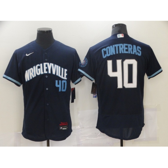 Men's Chicago Cubs #40 Willson Contreras Navy City Connect Cool Base Stitched Jersey