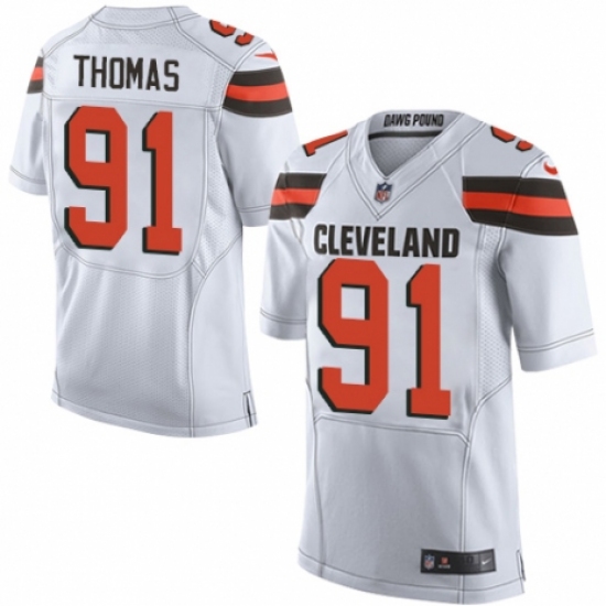 >Men's Nike Cleveland Browns #91 Chad Thomas Elite White NFL Jersey