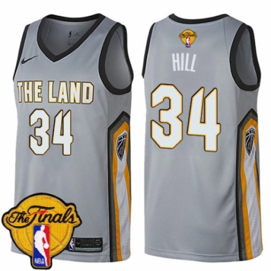 >Men's Nike Cleveland Cavaliers #34 Tyrone Hill Swingman Gray 2018 NBA Finals Bound NBA Jersey - City Edition