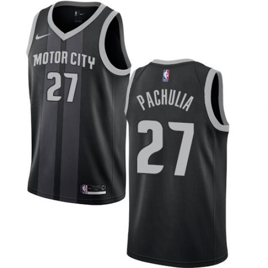 >Men's Nike Detroit Pistons #27 Zaza Pachulia Swingman Black NBA Jersey - City Edition