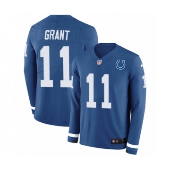 Men's Nike Indianapolis Colts #11 Ryan Grant Limited Blue Therma Long Sleeve NFL Jersey