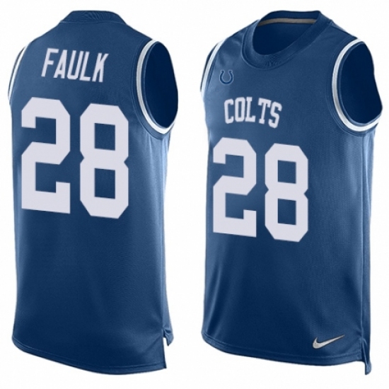 >Men's Nike Indianapolis Colts #28 Marshall Faulk Limited Royal Blue Player Name & Number Tank Top NFL Jersey