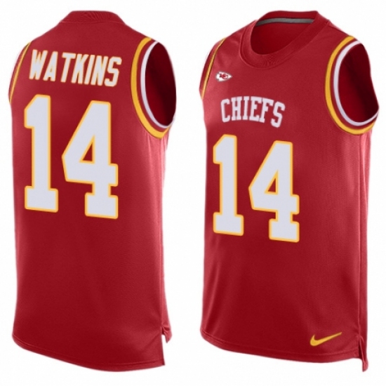 >Men's Nike Kansas City Chiefs #14 Sammy Watkins Limited Red Player Name & Number Tank Top NFL Jersey