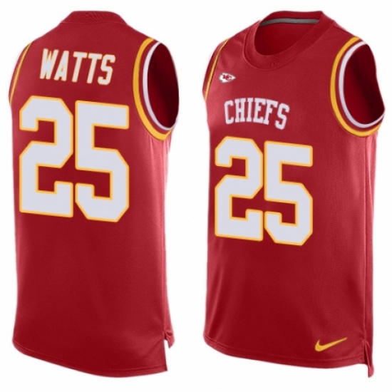 >Men's Nike Kansas City Chiefs #25 Armani Watts Limited Red Player Name & Number Tank Top NFL Jersey
