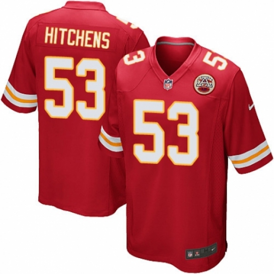 >Men's Nike Kansas City Chiefs #53 Anthony Hitchens Game Red Team Color NFL Jersey