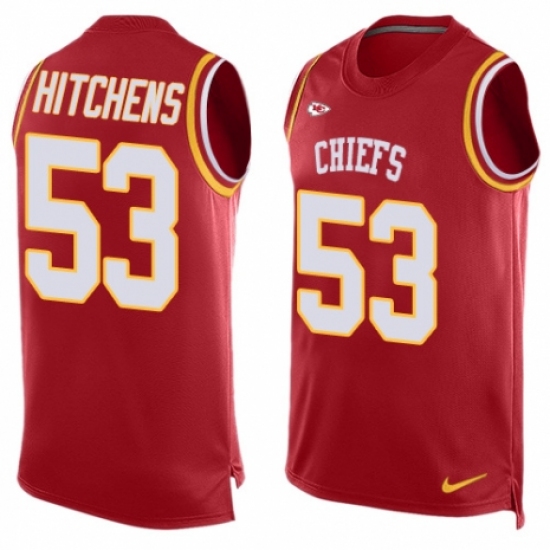 >Men's Nike Kansas City Chiefs #53 Anthony Hitchens Limited Red Player Name & Number Tank Top NFL Jersey