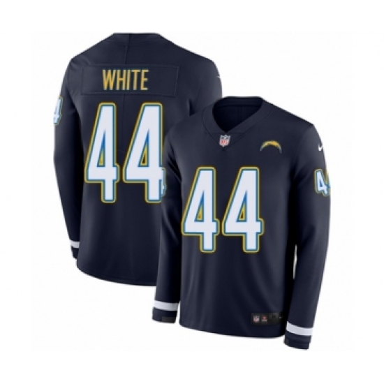 Men's Nike Los Angeles Chargers #44 Kyzir White Limited Navy Blue Therma Long Sleeve NFL Jersey