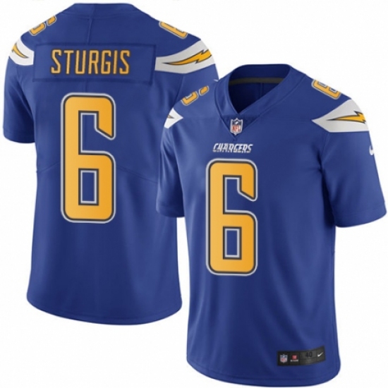 >Men's Nike Los Angeles Chargers #6 Caleb Sturgis Elite Electric Blue Rush Vapor Untouchable NFL Jersey