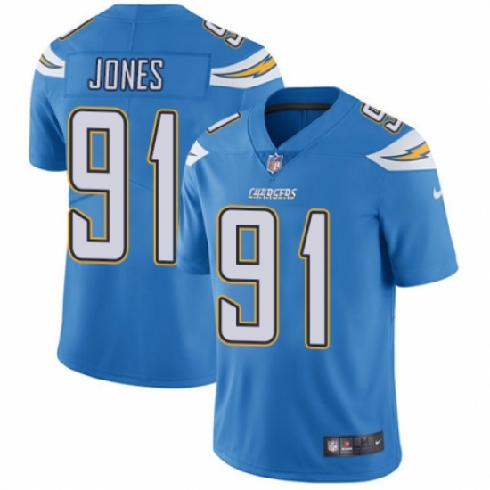 Men's Nike Los Angeles Chargers #91 Justin Jones Electric Blue Alternate Vapor Untouchable Limited Player NFL Jersey