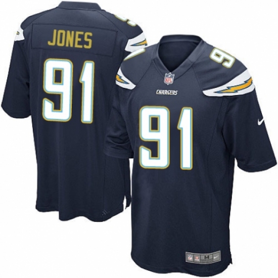 Men's Nike Los Angeles Chargers #91 Justin Jones Game Navy Blue Team Color NFL Jersey