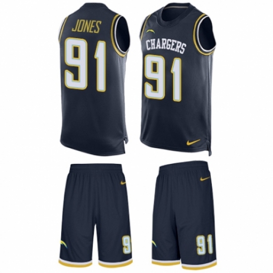 Men's Nike Los Angeles Chargers #91 Justin Jones Limited Navy Blue Tank Top Suit NFL Jersey