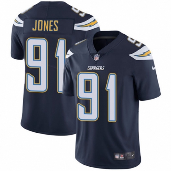 Men's Nike Los Angeles Chargers #91 Justin Jones Navy Blue Team Color Vapor Untouchable Limited Player NFL Jersey