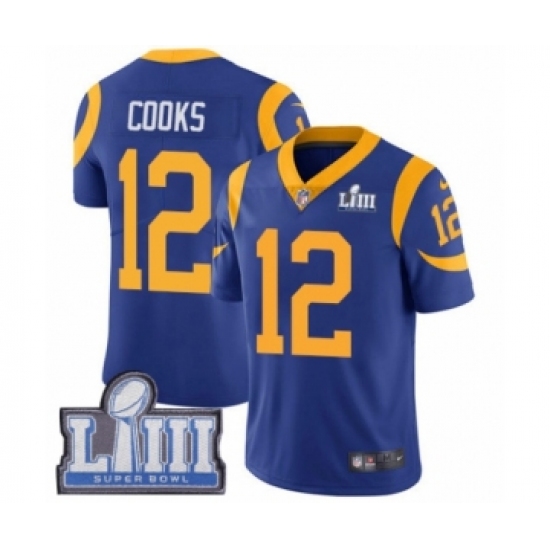 >Men's Nike Los Angeles Rams #12 Brandin Cooks Royal Blue Alternate Vapor Untouchable Limited Player Super Bowl LIII Bound NFL Jersey