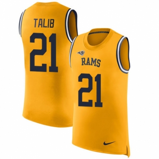 >Men's Nike Los Angeles Rams #21 Aqib Talib Limited Gold Rush Player Name & Number Tank Top NFL Jersey