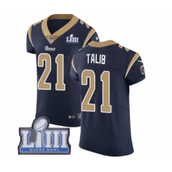 >Men's Nike Los Angeles Rams #21 Aqib Talib Navy Blue Team Color Vapor Untouchable Elite Player Super Bowl LIII Bound NFL Jersey