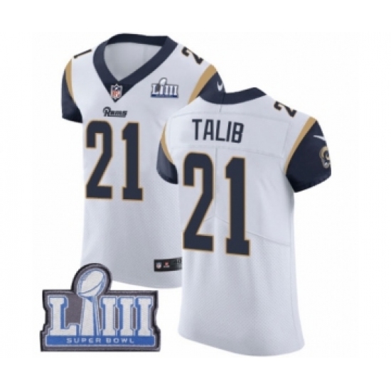 >Men's Nike Los Angeles Rams #21 Aqib Talib White Vapor Untouchable Elite Player Super Bowl LIII Bound NFL JerseyLIII Bound NFL Jersey