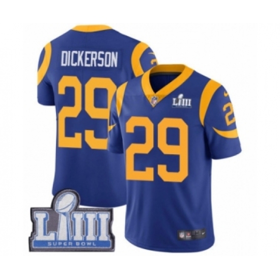 Men's Nike Los Angeles Rams #29 Eric Dickerson Royal Blue Alternate Vapor Untouchable Limited Player Super Bowl LIII Bound NFL Jersey