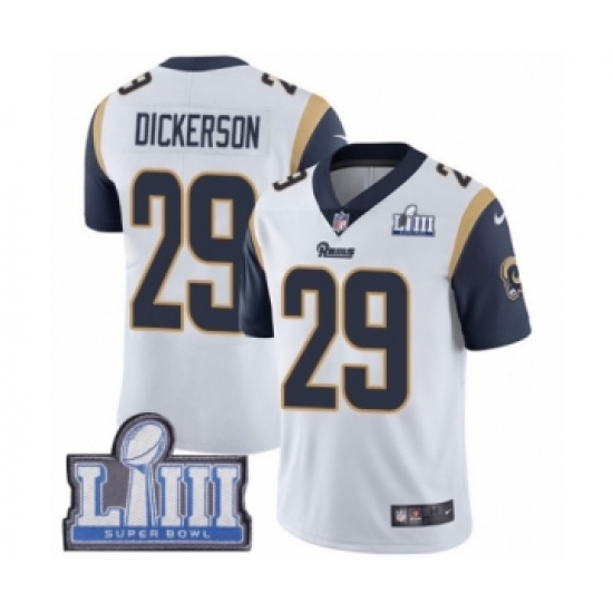 Men's Nike Los Angeles Rams #29 Eric Dickerson White Vapor Untouchable Elite Player Super Bowl LIII Bound NFL Jersey