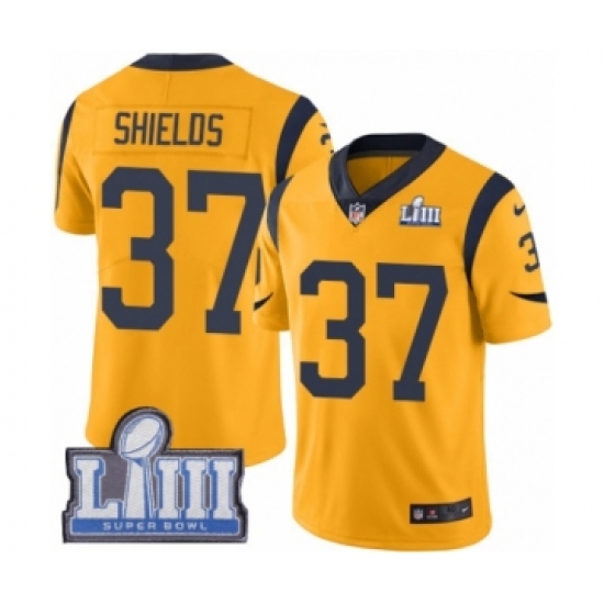 >Men's Nike Los Angeles Rams #37 Sam Shields Limited Gold Rush Vapor Untouchable Super Bowl LIII Bound NFL Jersey