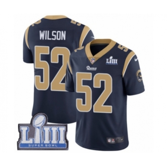 >Men's Nike Los Angeles Rams #52 Ramik Wilson Navy Blue Team Color Vapor Untouchable Limited Player Super Bowl LIII Bound NFL Jersey