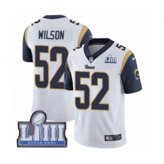 >Men's Nike Los Angeles Rams #52 Ramik Wilson White Vapor Untouchable Limited Player Super Bowl LIII Bound NFL Jersey