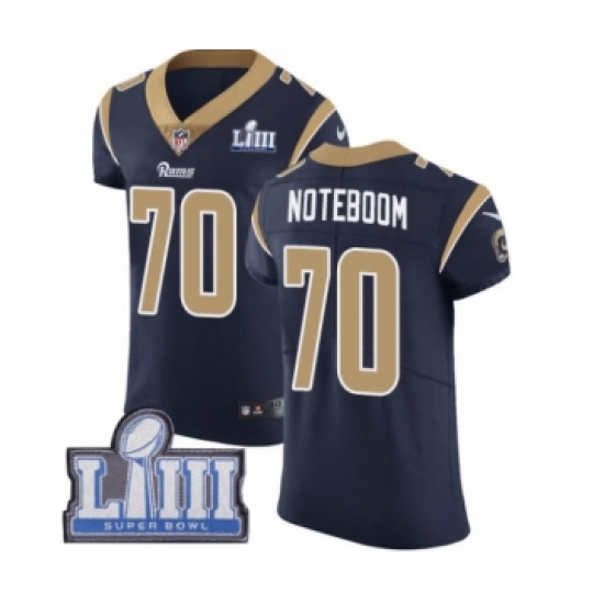 >Men's Nike Los Angeles Rams #70 Joseph Noteboom Navy Blue Team Color Vapor Untouchable Elite Player Super Bowl LIII Bound NFL Jersey