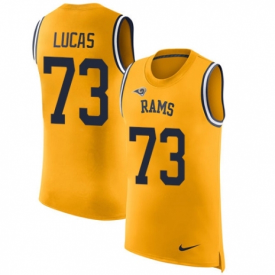 >Men's Nike Los Angeles Rams #73 Cornelius Lucas Limited Gold Rush Player Name & Number Tank Top NFL Jersey