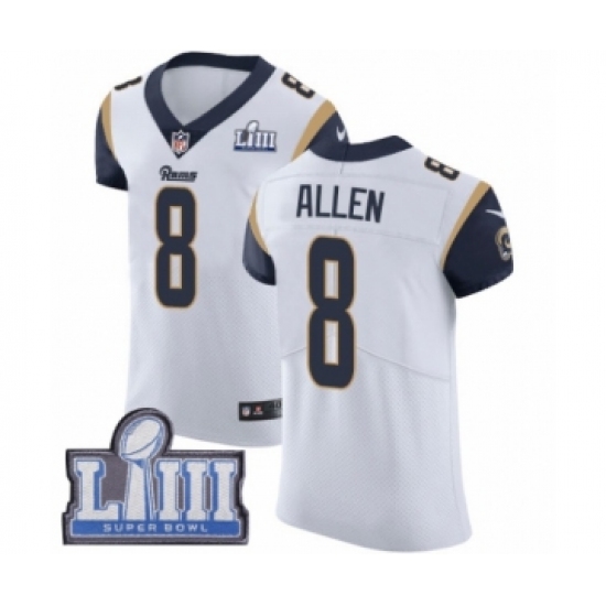 >Men's Nike Los Angeles Rams #8 Brandon Allen White Vapor Untouchable Elite Player Super Bowl LIII Bound NFL Jersey