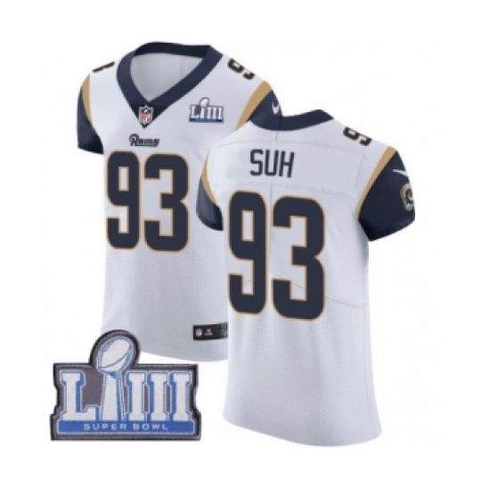 >Men's Nike Los Angeles Rams #93 Ndamukong Suh White Vapor Untouchable Elite Player Super Bowl LIII Bound NFL Jersey