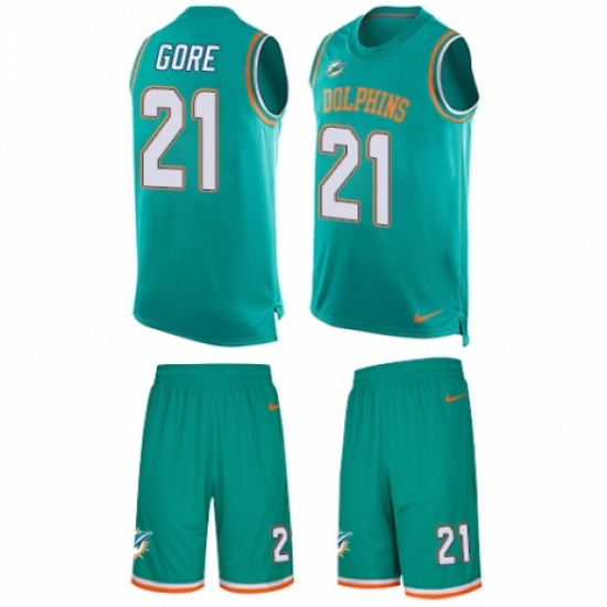 >Men's Nike Miami Dolphins #21 Frank Gore Limited Aqua Green Tank Top Suit NFL Jersey
