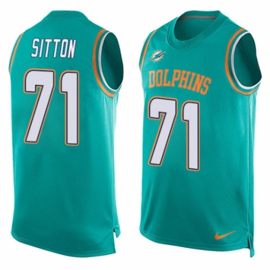 Men's Nike Miami Dolphins #71 Josh Sitton Limited Aqua Green Player Name & Number Tank Top NFL Jersey
