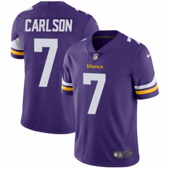 >Men's Nike Minnesota Vikings #7 Daniel Carlson Purple Team Color Vapor Untouchable Limited Player NFL Jersey