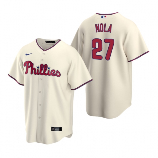 >Men's Nike Philadelphia Phillies #27 Aaron Nola Cream Alternate Stitched Baseball Jersey