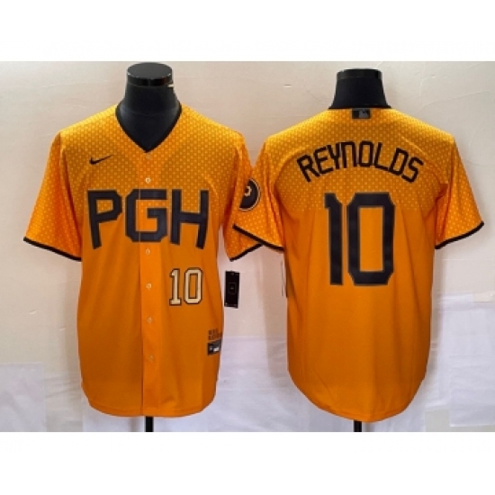 Men's Nike Pittsburgh Pirates #10 Bryan Reynolds Gold 2023 City Connect Stitched Jersey