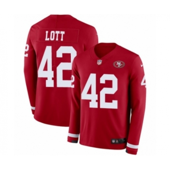>Men's Nike San Francisco 49ers #42 Ronnie Lott Limited Red Therma Long Sleeve NFL Jersey