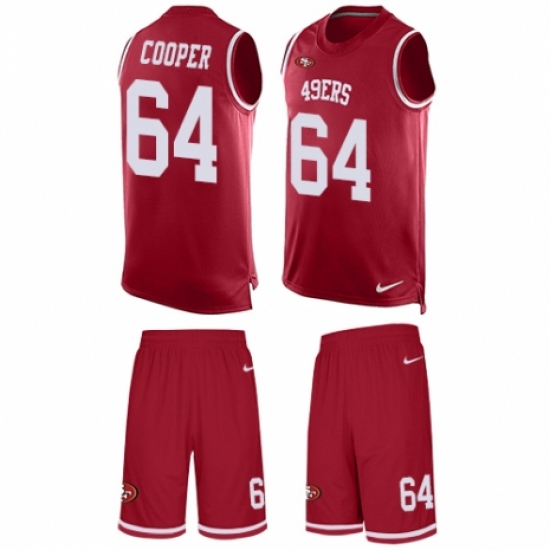 >Men's Nike San Francisco 49ers #64 Jonathan Cooper Limited Red Tank Top Suit NFL Jersey