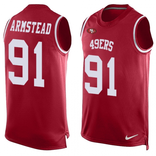Home>NFL>San Francisco 49ers>Arik Armstead>Men's Nike San Francisco 49ers #91 Arik Armstead Limited Red Player Name & Number Tank Top NFL Jersey