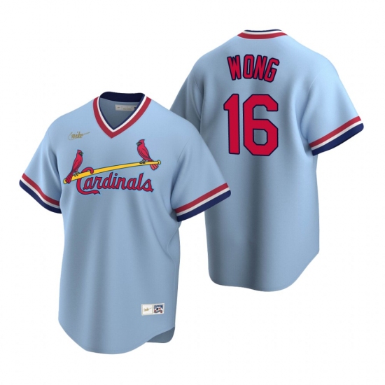 >Men's Nike St. Louis Cardinals #16 Kolten Wong Light Blue Cooperstown Collection Road Stitched Baseball Jersey
