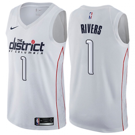 >Men's Nike Washington Wizards #1 Austin Rivers Swingman White NBA Jersey - City Edition