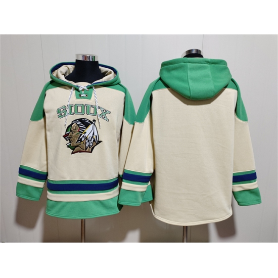 Men's North Dakota Fighting Hawks Blank Cream Green Lace-Up Pullover Hoodie