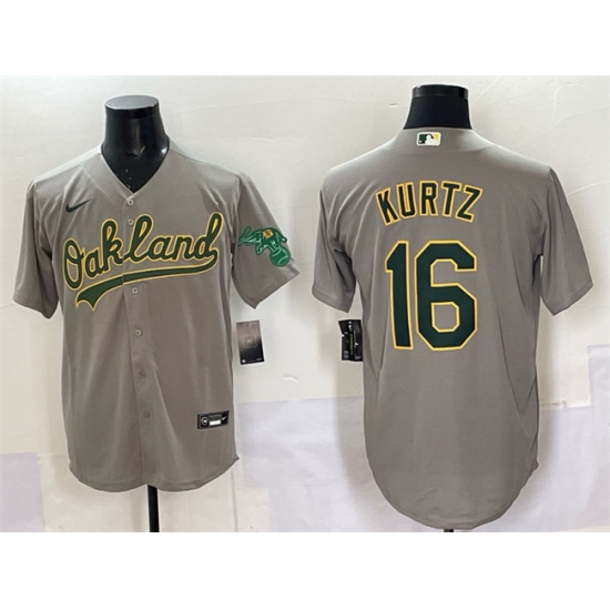 Men's Oakland Athletics #16 Nick Kurtz Grey Cool Base Stitched Baseball Jersey