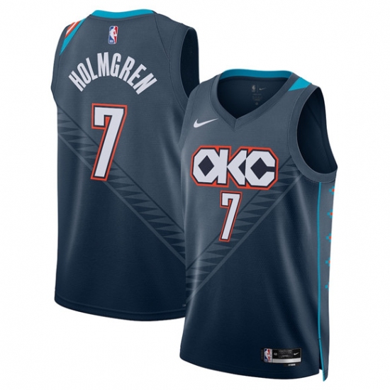 >Men's Oklahoma City Thunder #7 Chet Holmgren Navy 2025-26 City Edition Swingman Stitched Basketball Jersey