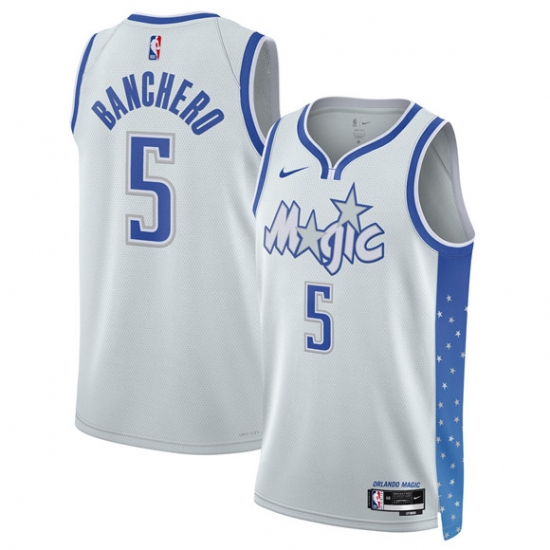 Men's Orlando Magic #5 Paolo Banchero Silver 2025-26 City Edition Stitched Basketball Jersey