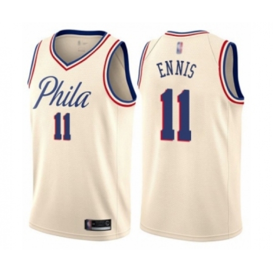 >Men's Philadelphia 76ers #11 James Ennis Authentic Cream Basketball Jersey - City Edition