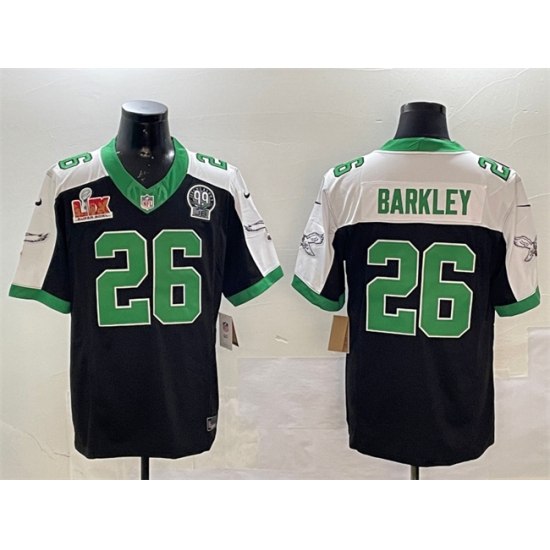 Men's Philadelphia Eagles #26 Saquon Barkley Black 2025 Super Bowl LIX And Jerome Brown F.U.S.E. Alternate Stitched Football Jersey