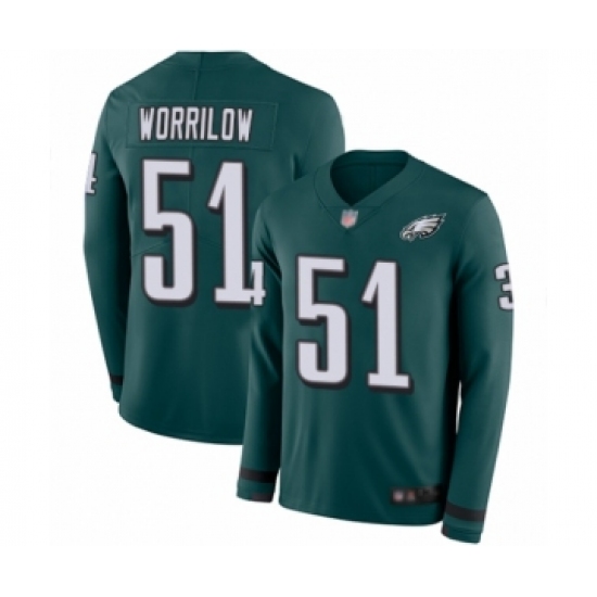 >Men's Philadelphia Eagles #51 Paul Worrilow Limited Green Therma Long Sleeve Football Jersey
