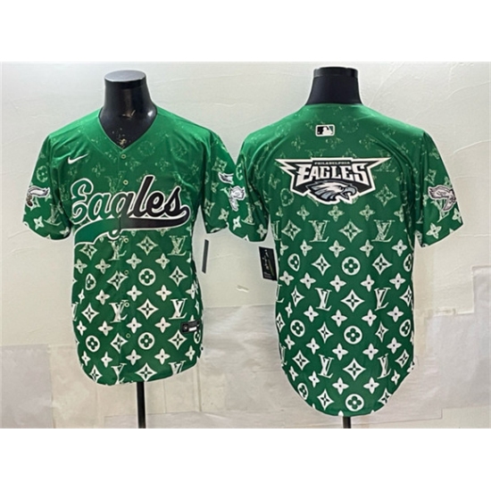 Men's Philadelphia Eagles Team Big Logo Green With Limited Stitched Baseball Jersey