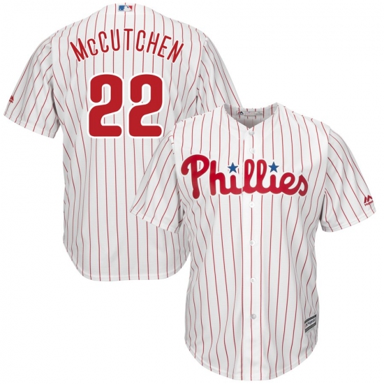 Men's Philadelphia Phillies #22 Andrew McCutchen Majestic White Scarlet Official Cool Base Player Jersey