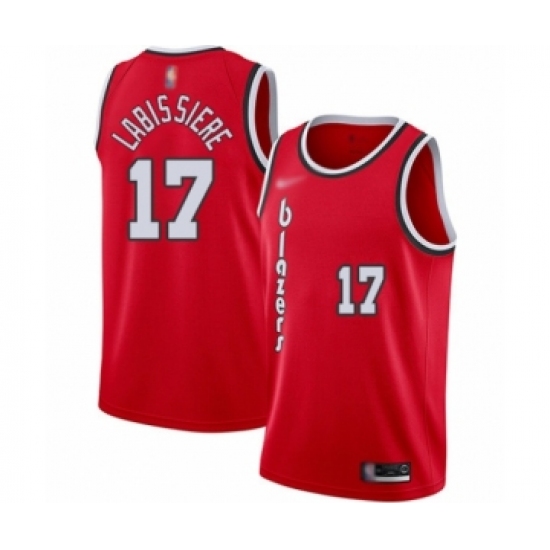 >Men's Portland Trail Blazers #17 Skal Labissiere Authentic Red Hardwood Classics Basketball Jersey