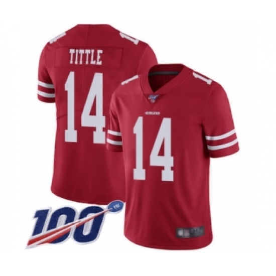 Men's San Francisco 49ers #14 Y.A. Tittle Red Team Color Vapor Untouchable Limited Player 100th Season Football Jersey